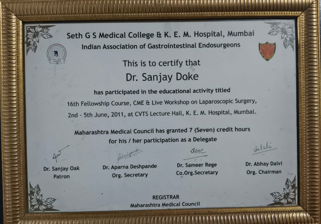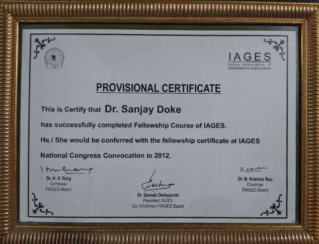 Dr. Sanjay Doke has successfully completed the Fellowship Course of IAGES (Indian Association of Gastrointestinal Endo-Surgeons).